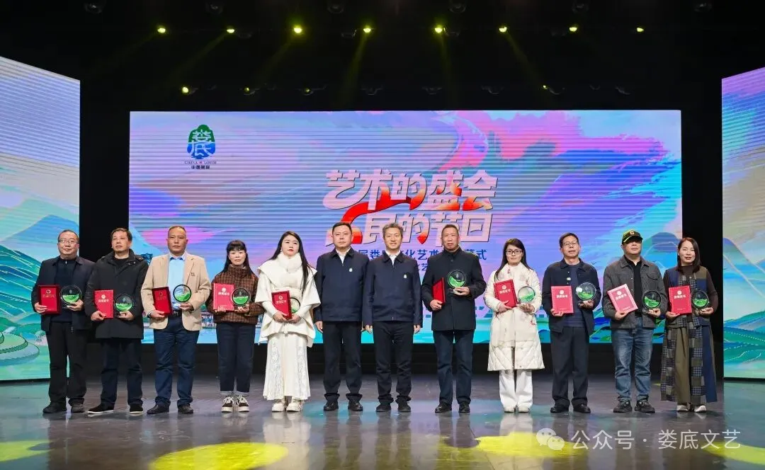 闭幕式上,相关领导为娄底美术奖、娄底书法篆刻奖、娄底摄影奖、“镜像娄底·大美星城”短视频暨微电影大赛奖、娄底戏剧奖、娄底文学奖获奖者颁奖。